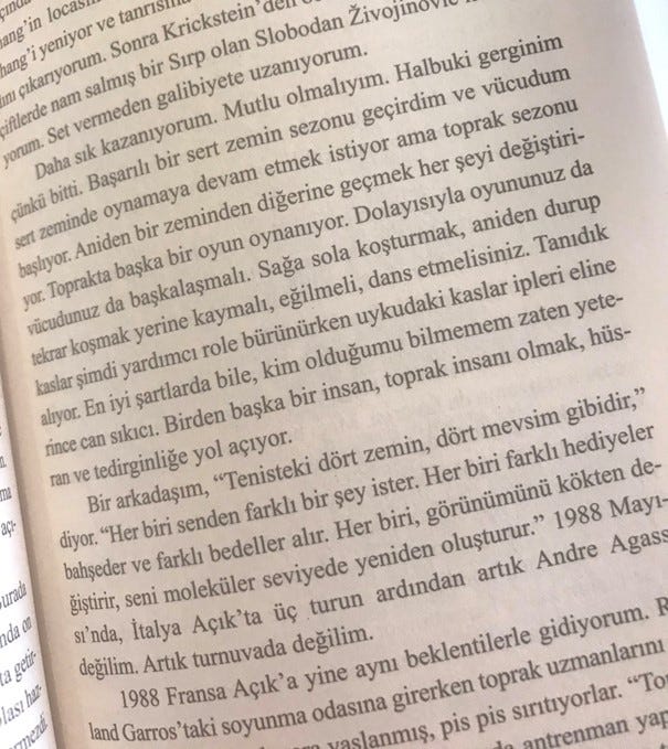 Bu örneği vermemin asıl amacı şu: Trend takip stratejinizdeki zaman aralığınız ne ise, piyasalarda o zaman aralığındaki değişimleri tespit edebilmek ve riski o doğrultuda yönetip, oyun planını ona göre ayarlayabilmek bir traderın sahip olması gereken en önemli özelliklerden biridir. Size daha önce bir çok defa tavsiye ettiğim Andre Agassi`nin "Açık" kitabından bir paragraf paylaşıyorum. Anlatmaya çalıştığım konuyla ilgili farklı bir dünyadan, gerçek bir örnek...