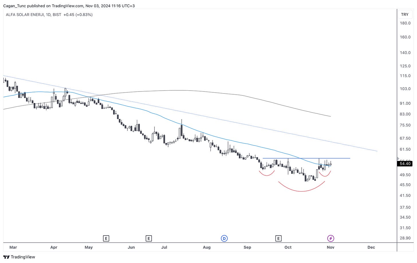 #ALFAS - Eylül 2023’den bu yana düşüş trendinde olan bu hisse senedi, #Borsaistanbul enerji sektörü hisselerindeki kıpırdanmayla beraber dipte önemli bir dönüş formasyonu oluşturmaya çalışıyor.