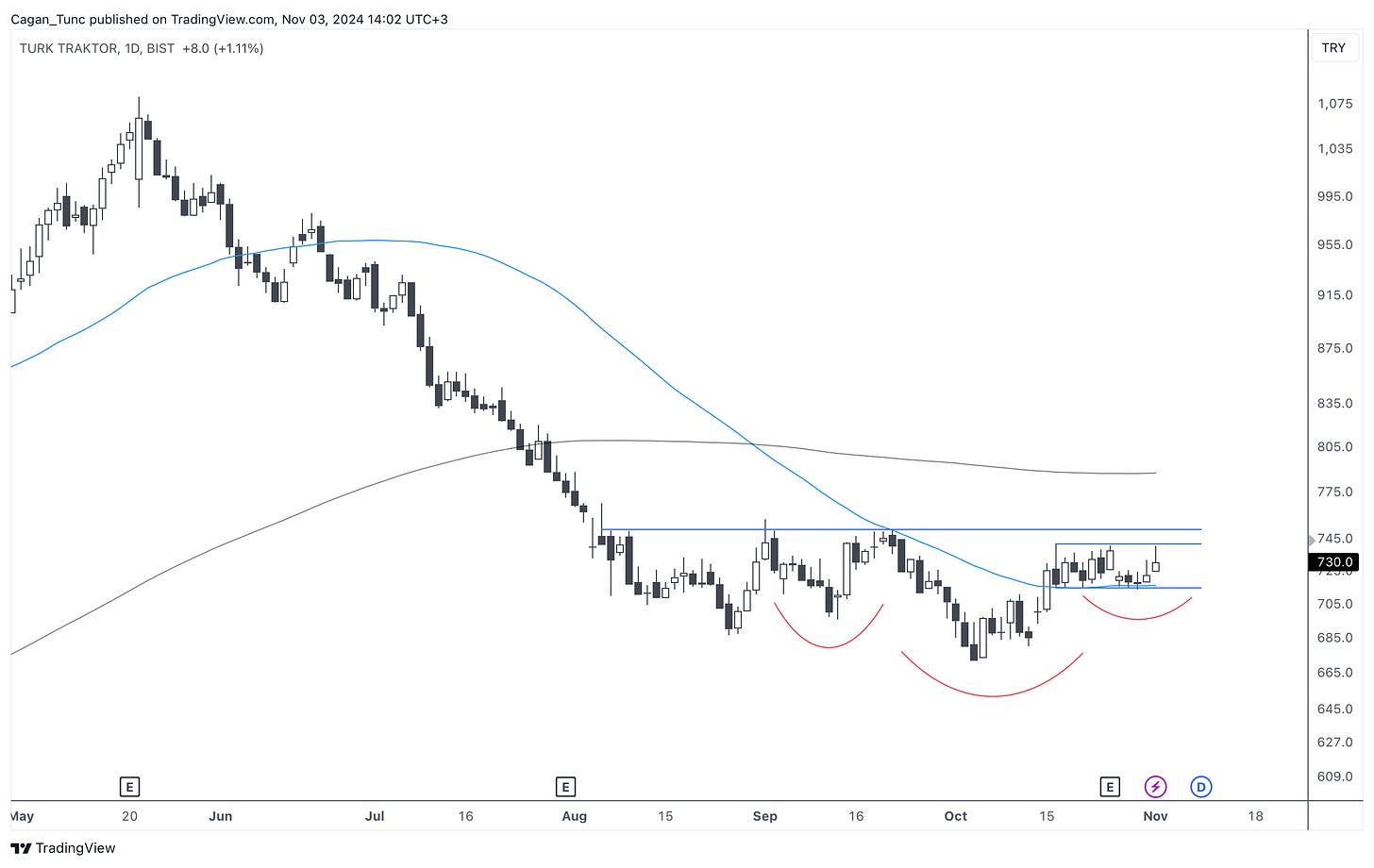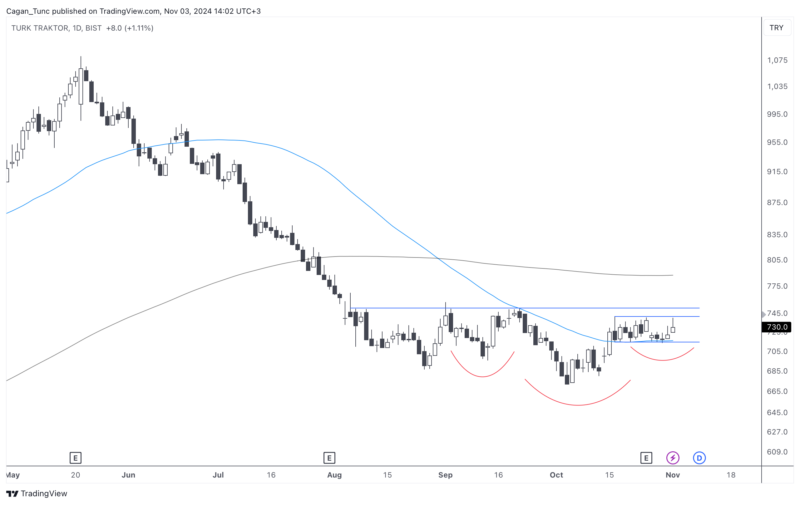 #TTRAK - Uzun süredir düşüş trendinde olan bu hisse senedi grafiğinde önemli bir dönüş formasyonu takip ediyorum.