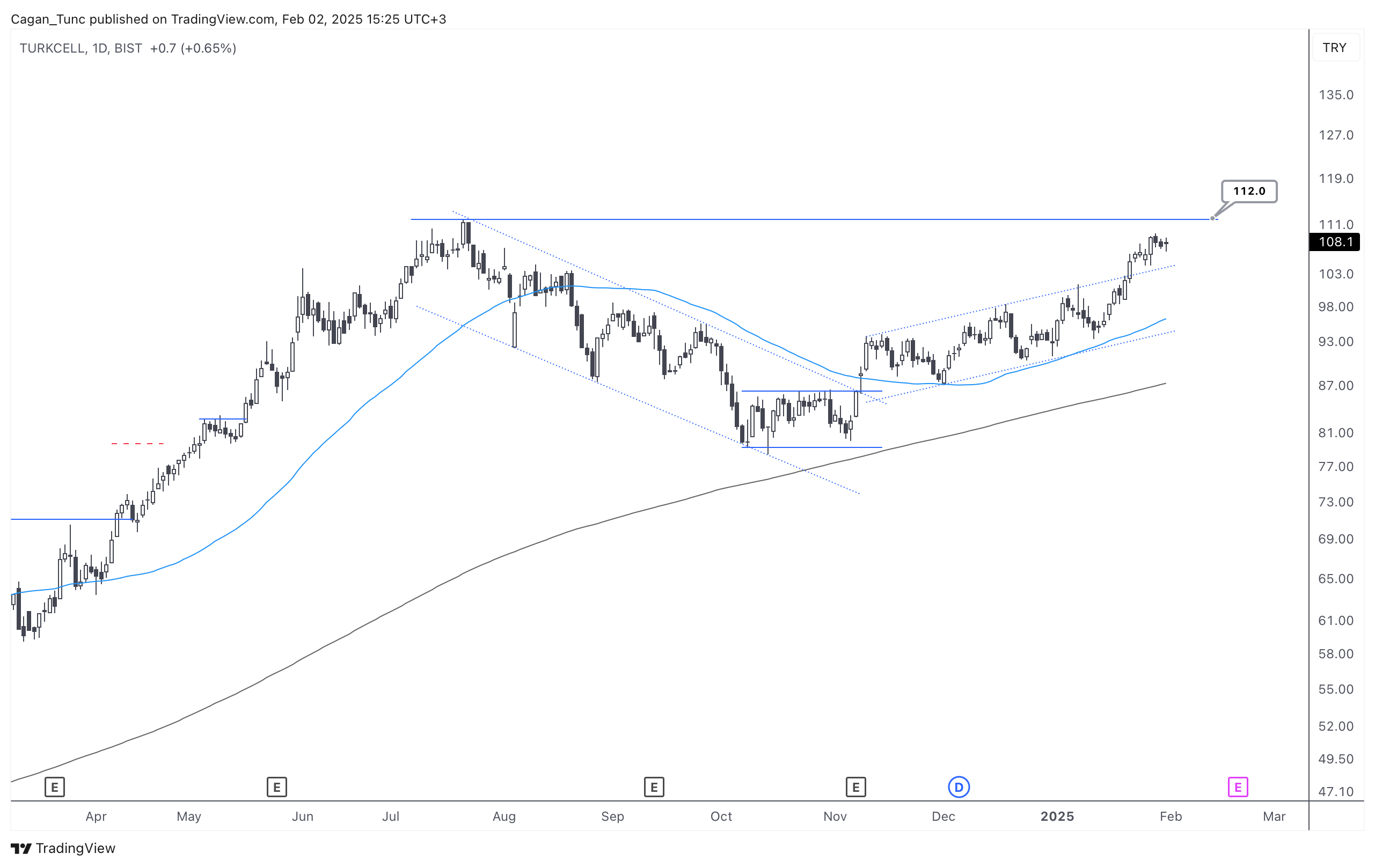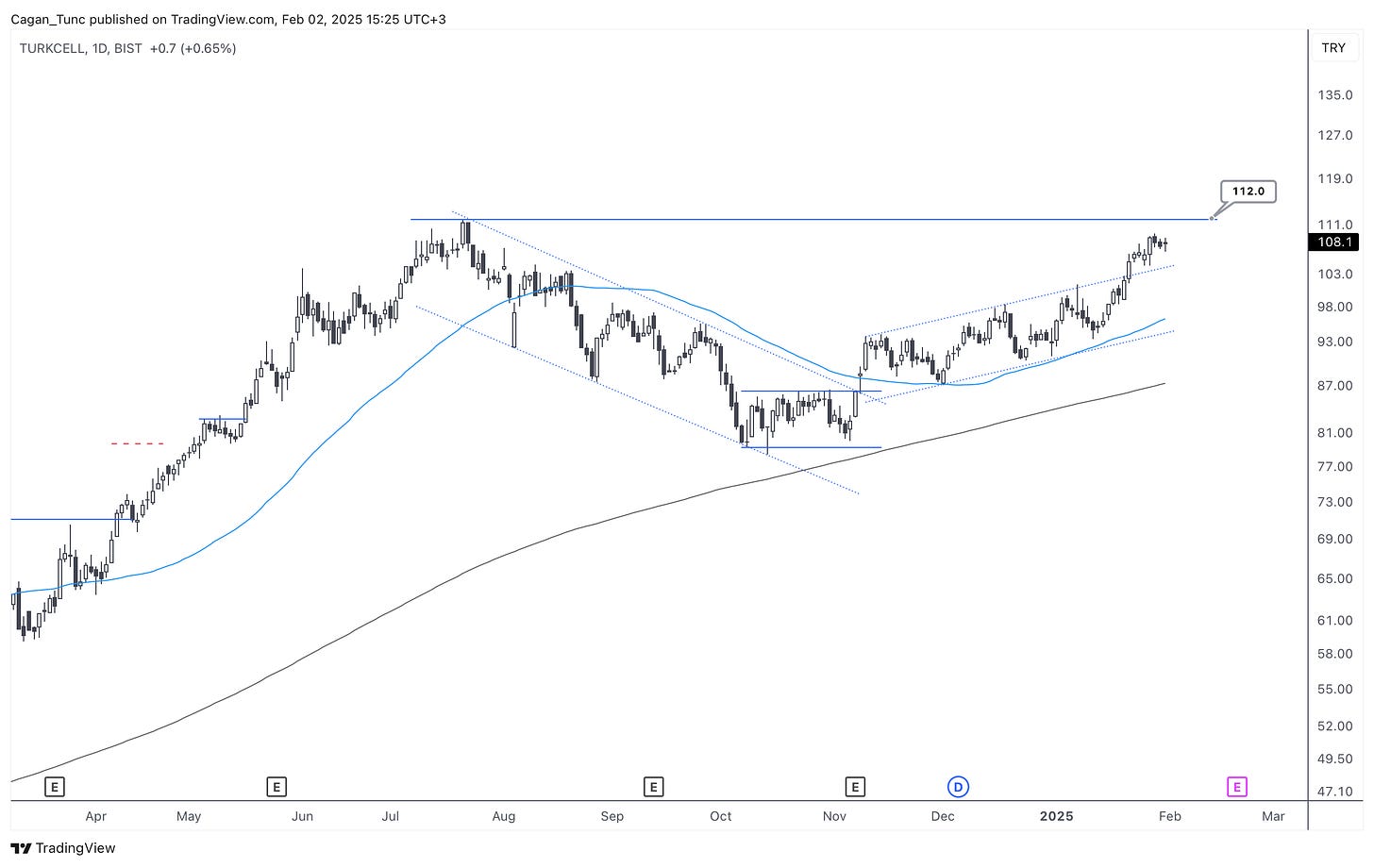 #TCELL - Bir süredir endekse görece güçlü hareket eden ve yükseliş trendi devam eden bu hisse senedi gördüğü en yüksek seviye olan 112-TL’ye yaklaşıyor. Bu bölgede fiyatın direnç görmesi ve biraz yavaşlaması gayet doğal olacaktır. Hisse senedi momentumunu koruduğu sürece 112-TL çevresinde gerçekleşecek fiyat hareketleri yakından takip edilmeli. Fiyatın bu seviyenin üzerine yerleşmesi yeni bir oyun alanı açacağı için, mevcut pozisyonlara eklemeler ve yeni pozisyon açmak için bu seviyenin geçilmesi önem taşıyacak. Geri çekilmelerde üzerine geçilen yükselen kanal üst bandı ve 50 günlük ortalama ilk destek seviyeleri olarak takip edilebilir.