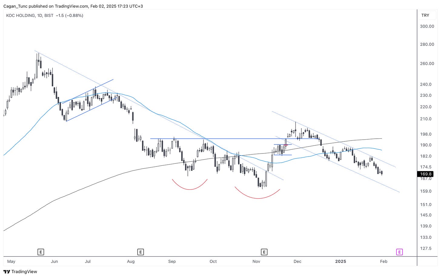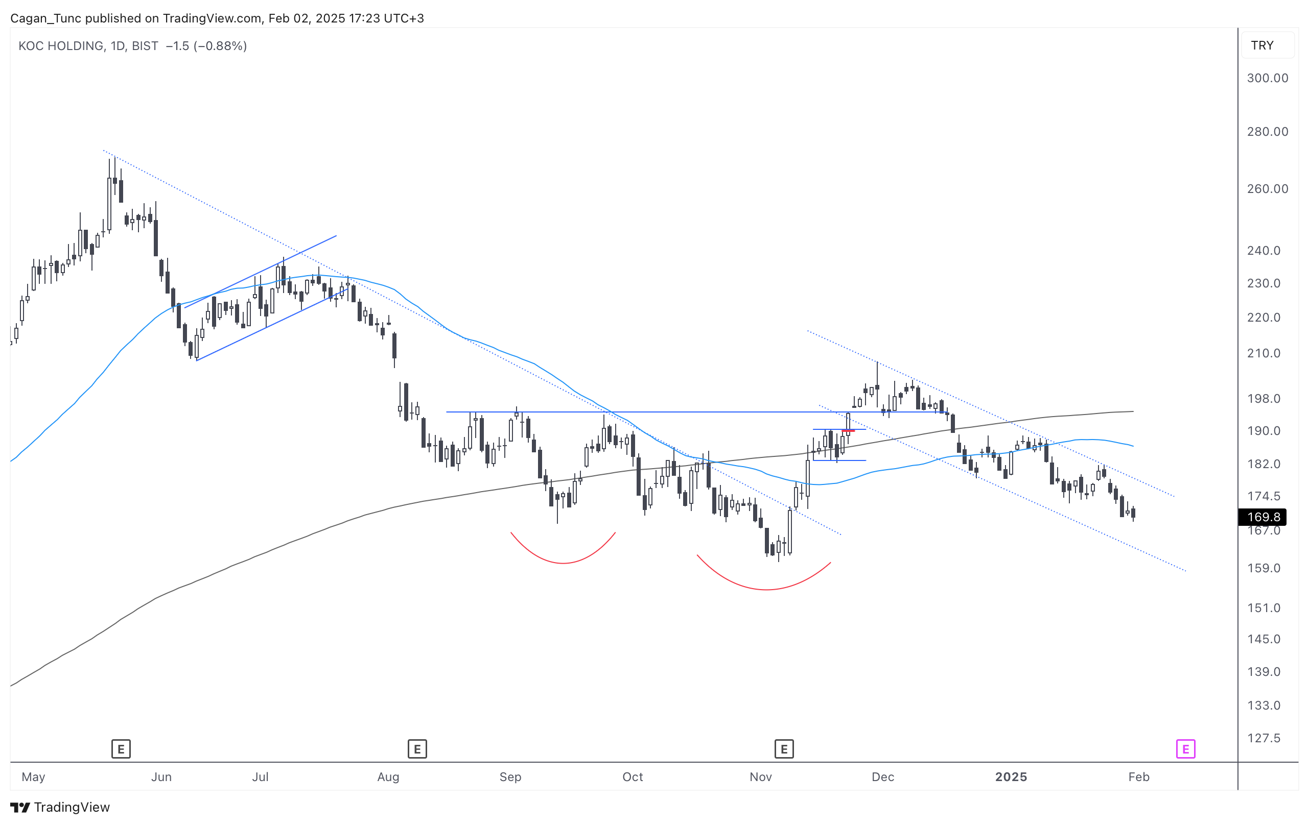 #KCHOL - Ortalamaların altında fiyatlanan ve kısa-orta vadeli düşüş trendi devam eden bu hisse senedinin benim gibi swing trade/trend takibi yapanlar için zamana ihtiyacı var.