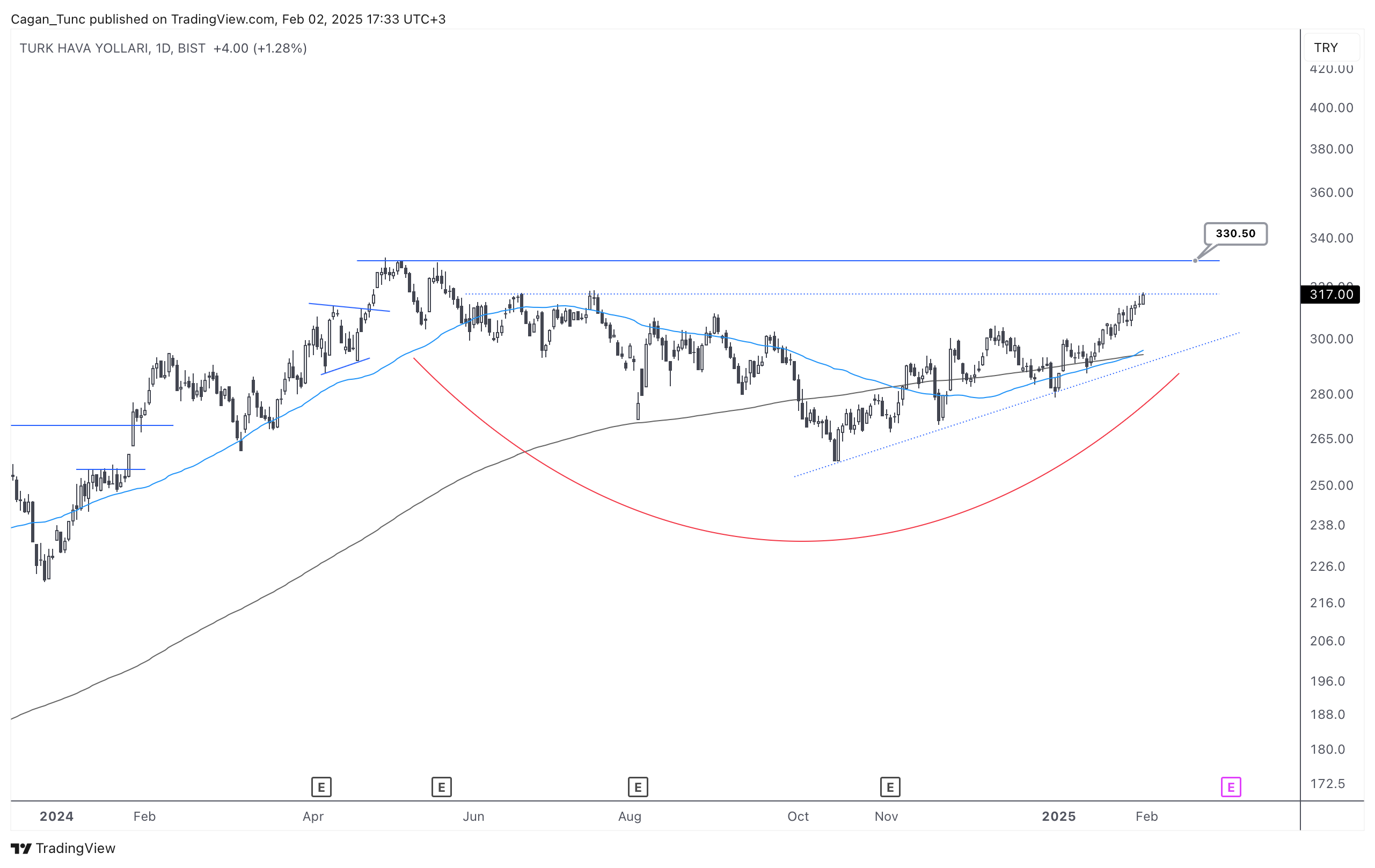 #THYAO - Uzun süredir üzerindeki “Overhead Resistance” baskısı net olarak hissedilen bu hisse senedi grafiği son iki haftadır baskıyı kırmaya başladı. Gördüğü zirve seviyeye yaklaşan fiyatın bu bölgelerde biraz daha baskı görmesi normal oalcaktır. Fiyat 330.5-TL seviyesinin üzerine yerleşebilirse hisse senedinin önünde yeni bir oyun alanı açılacaktır. Aşağıdan gelen yükselen trend çizgisi aşağı kırılmadığı sürece 330.5-TL’ye doğru hareket devam edecektir.