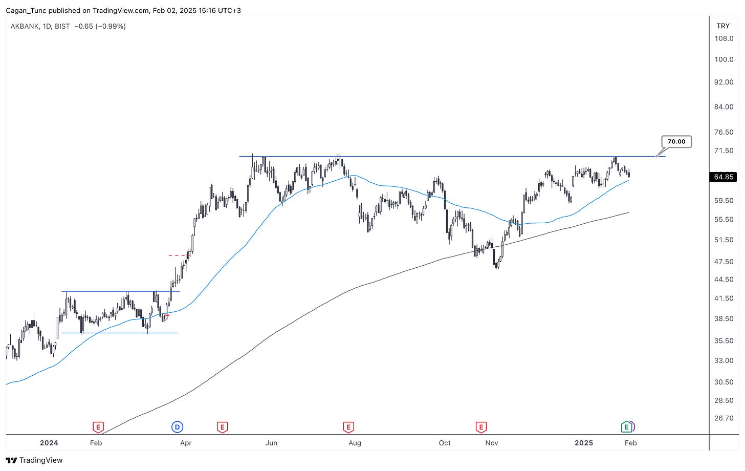#AKBNK - Teknik olarak net bir görüntü sunan bu hisse senedi için fiyat 70-TL direnci üzerine yerleşebilirse yeni bir oyun alanı açılacaktır. Bir süredir 50 günlük ortalamanın desteği ile hareket eden hisse senedi için bu desteğin tutmaması durumunda fiyat uzun dönem ortalamaya doğru çekilebilir. 70-TL seviyesi geçilmeden kısa-orta vadeli trade için agresif olmanın pek bir faydası olmayacaktır.