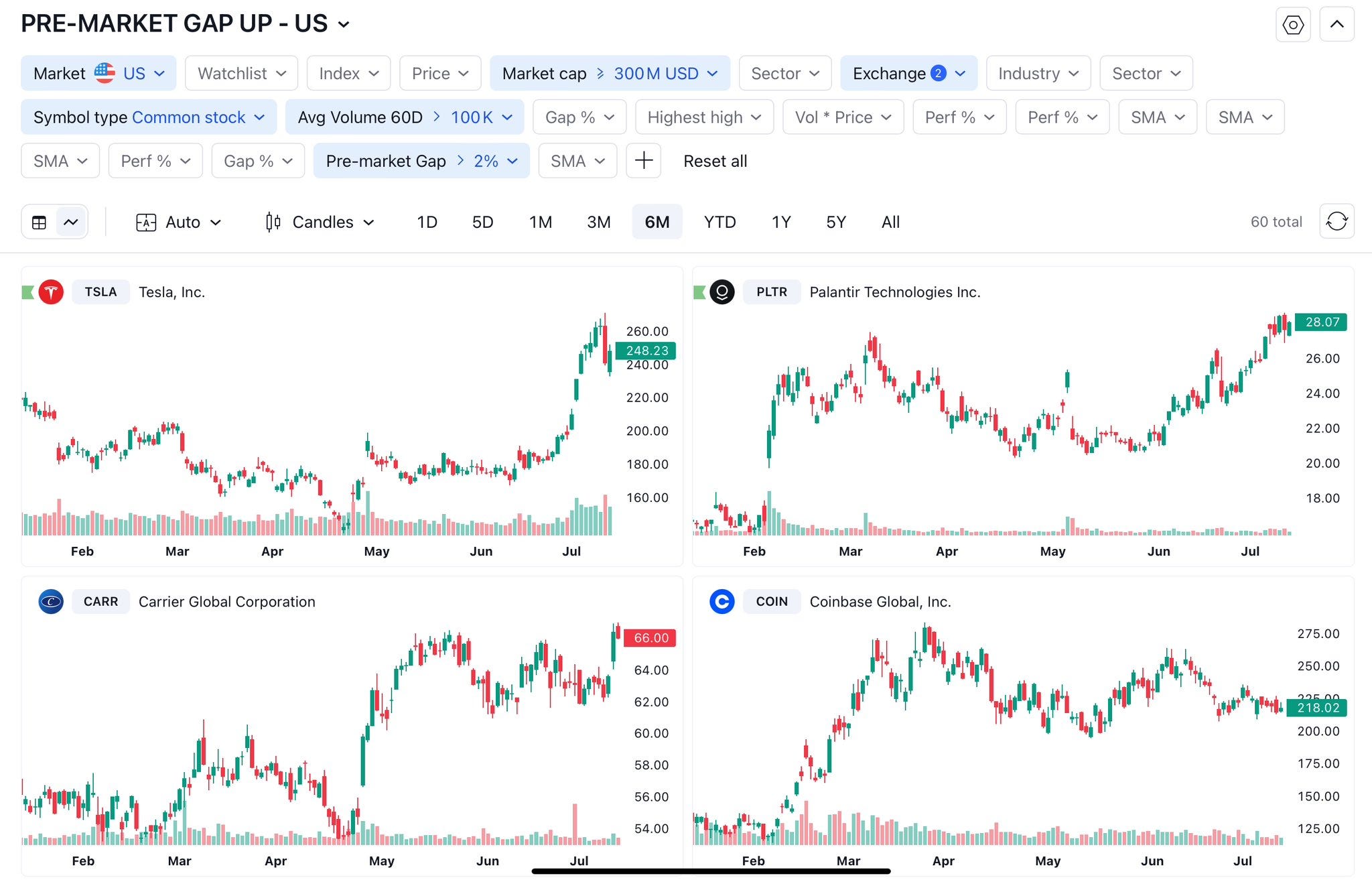 Daha önce X platformunda Amerika piyasaları açılmadan önce çalıştırdığım bir screenerı paylaşmıştım. Bu posta aşağıdaki linkten ulaşabilirsiniz. Screener görüntüsünü de aşağıda paylaşıyorum.