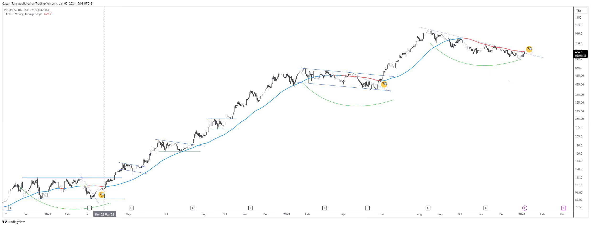 Bir hisse "base" oluştururken, yani konsolidasyon sürecine girdiği zaman, bu süreci base'in sağ ve sol tarafı olmak üzere iki ana faza ayırarak takip ediyorum. Bir hisse "base" oluştururken farklı karakteristik özellikler sergilese de, temelde benim dikkatimi çekmesi için gereken ortak özelliklerden biri (ve en önemlisi), sol tarafta gerçekleşen hacim-fiyat hareketleridir. Bu bölgede pozitif bir tablo gördüğüm takdirde, base sağ tarafa geçiş yaptığında (ki bu benim için genellikle fiyatın MA-50 üzerine çıkması ve/veya belirgin bir kısa vadeli düşüş trendini kırması olarak değerlendirilebilir (siz kendinize göre bir sistem kurabilirsiniz)) göstereceği güçlenme çok önemlidir. Benim için base'in sağ tarafa geçmesi kesinlikle bir alım sinyali değildir. Alım sinyali, bu bölgede hissenin kendini kanıtlayıp güçlenebilmesi ve uygun bir risk-kazanç oranı sunması ile gelecektir. Paylaştığım grafik örneğini inceleyebilirsiniz...