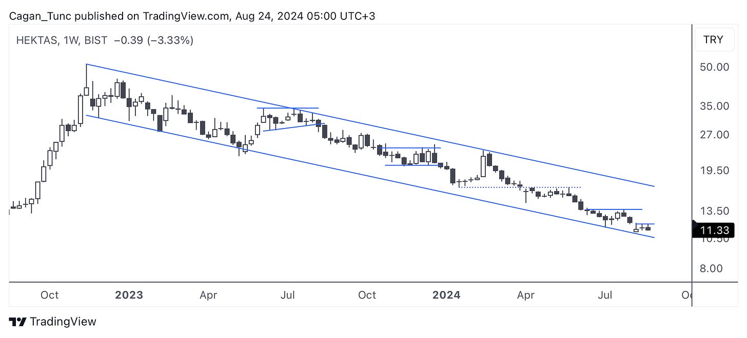 #HEKTS - Bu hisse senesinde Kasım 2022’de gördüğü zirve sonrası başlayan düşüş trendi kanal içerisinde devam ediyor. Teknik görüntüsü gayet net olan bu hisse senedinin yeni bir trend başlatabilmesi için düşen kanalı yukarı yönlü kırması gerekiyor.